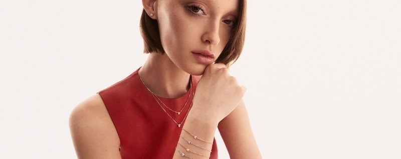 The Cartier d’Amour collection features bracelets, necklaces and earrings that augment the brilliance of diamonds through interplays of volume, tiered constructions and the signature closed setting.​
