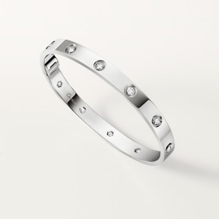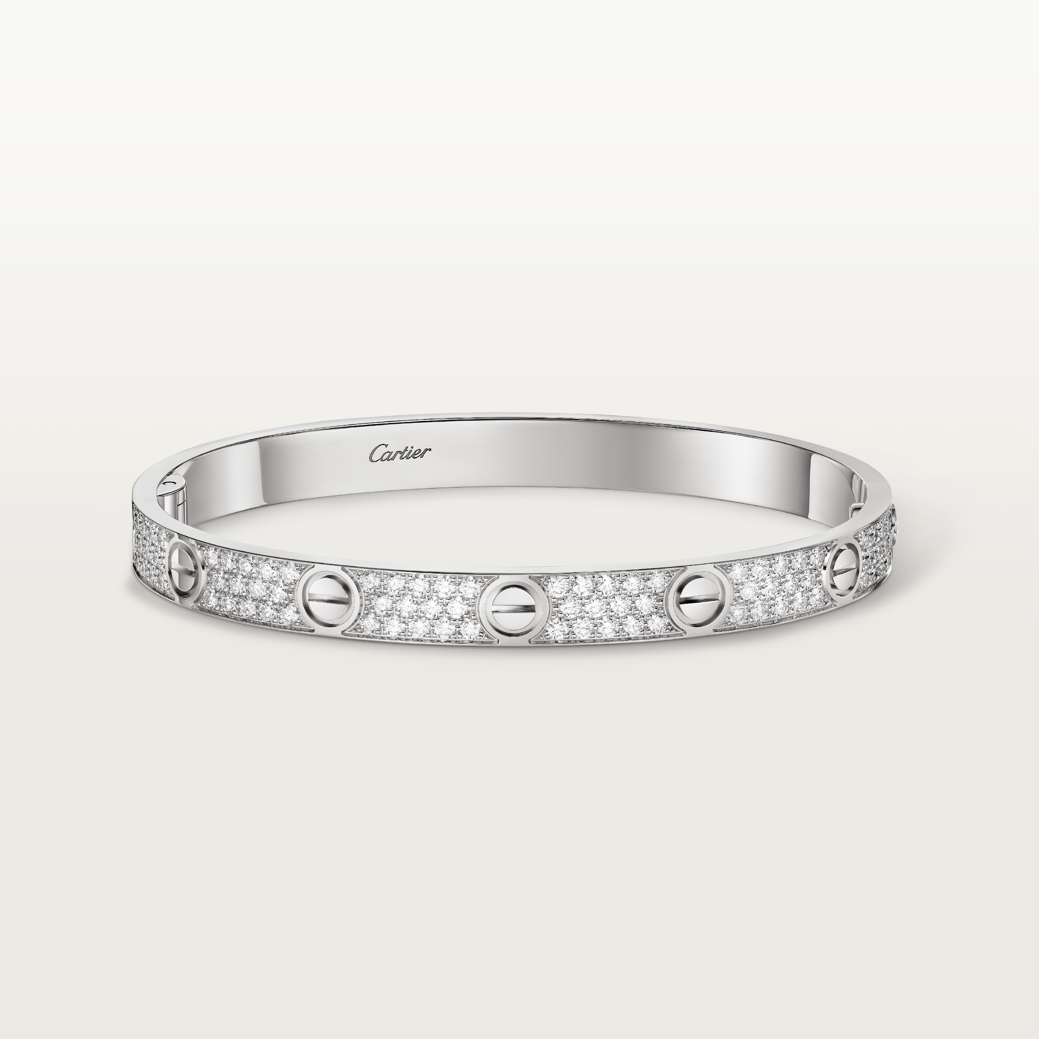 Product description: - White gold 750/1000 - Set with 165 brilliant-cut diamonds totalling 3.07 carats (for size 17) - Width: 6.1 mm - Fastening system: functional screw and hinge