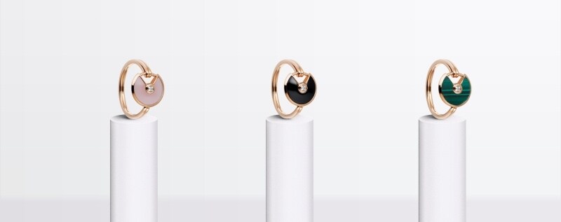 An enchanting collection of colourful talismans for your most private wishes. Each Amulette de Cartier piece features a unique natural gemstone, centred by a glistening diamond and guarded by a padlock. Keep your Amulette close, and your luck closer.