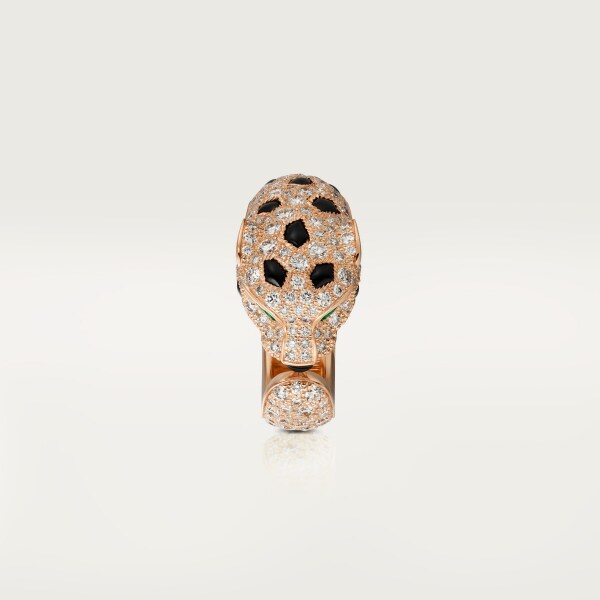 Panthère de Cartier ring, rose gold 750/1000, onyx, set with 2 emeralds and 242 brilliant-cut diamonds totalling 2.21 carats (for size 52).