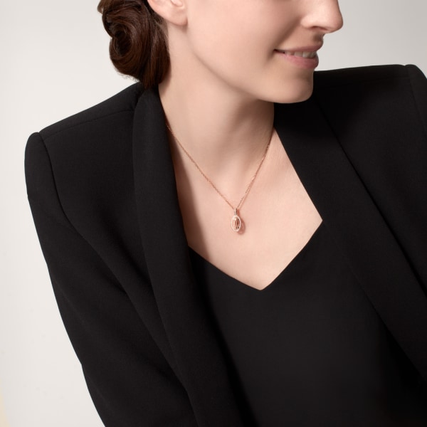 Double C de Cartier necklace, rose gold 750/1000, set with 37 brilliant-cut diamonds totalling 0.10 carat.