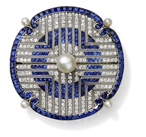 鉑金,單瓣切割鑽石,圓柱形切割刻面藍寶石,天然珍珠。