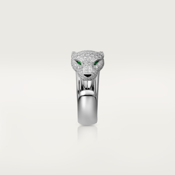 Panthère de Cartier 戒指,750/1000白色黃金,鑲嵌137顆明亮式切割圓鑽,共重1.15克拉,祖母綠,縞瑪瑙。圖案寬度:11.05毫米(適用尺寸:52)。