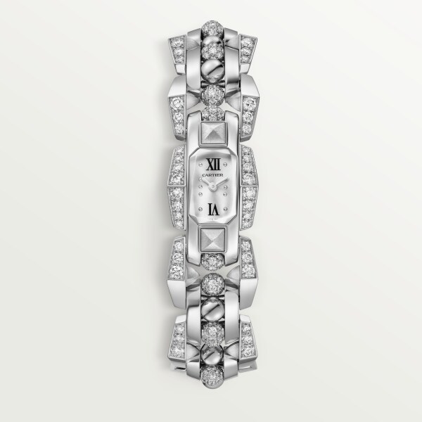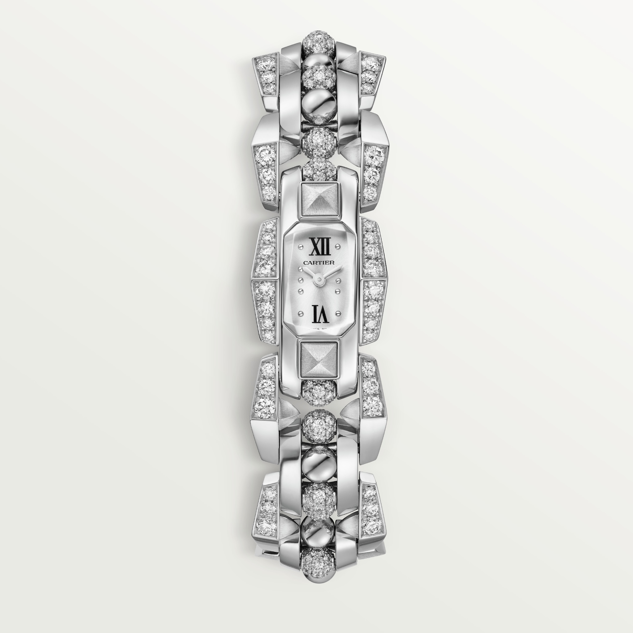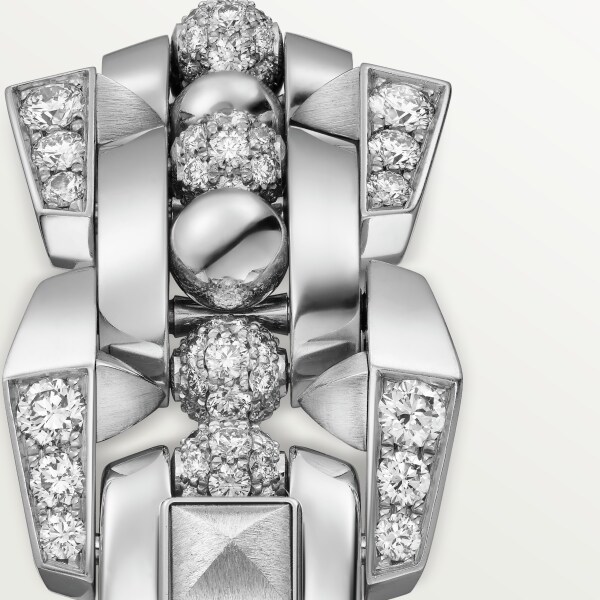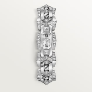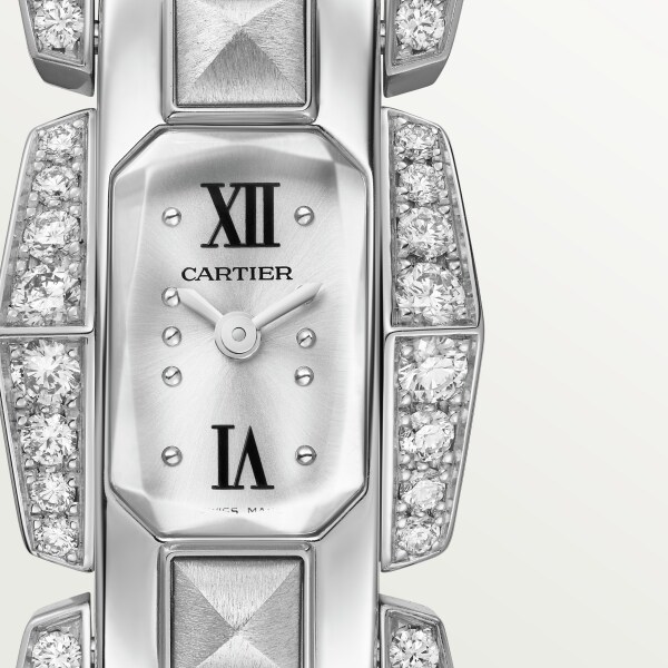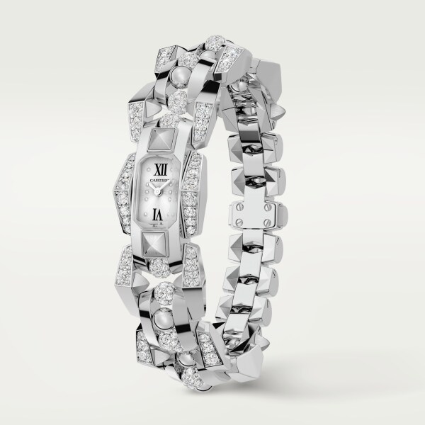 小型款,石英機芯,鍍銠飾面白色黃金,鑽石