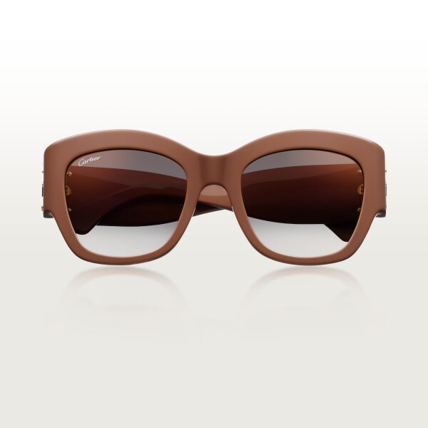 C de Cartier 焦糖色醋酸纖維太陽眼鏡,焦糖色琺瑯標誌,貓眼造型及灰色漸變鏡片,金色鏡面效果。尺寸:鏡片52毫米,鼻樑架21毫米,腳架135毫米。