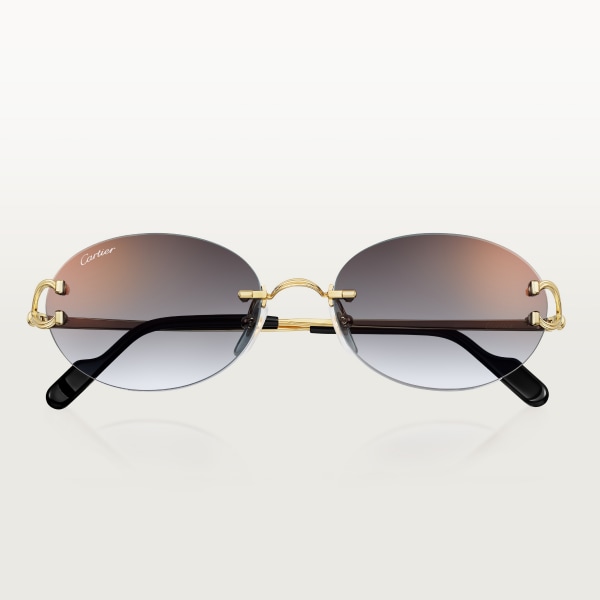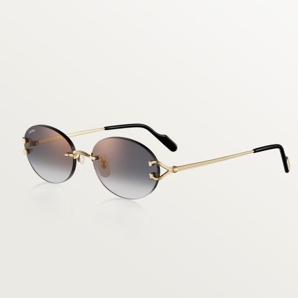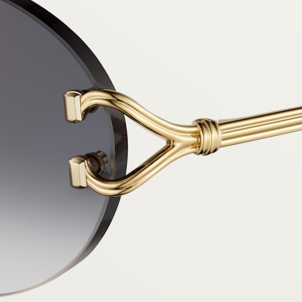 Décor Classic C de Cartier 圖案無框金屬太陽眼鏡,光滑金色飾面,橢圓形造型及灰色漸變鏡片,金色鏡面效果。尺寸:鏡片55毫米,鼻樑架18毫米,腳架140毫米。