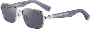 Première de Cartier 透明藍色醋酸纖維及金屬太陽眼鏡,光滑鍍鉑金飾面,方形造型及藍色鏡片。尺寸:鏡片53毫米,鼻樑架17毫米,腳架145毫米。
