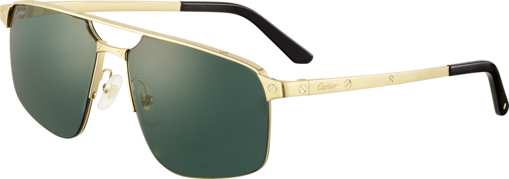 Santos de Cartier 太陽眼鏡,半框金屬,光滑及磨砂金色飾面,綠色鏡片。尺寸:鏡片60毫米,鼻樑架15毫米,腳架140毫米。